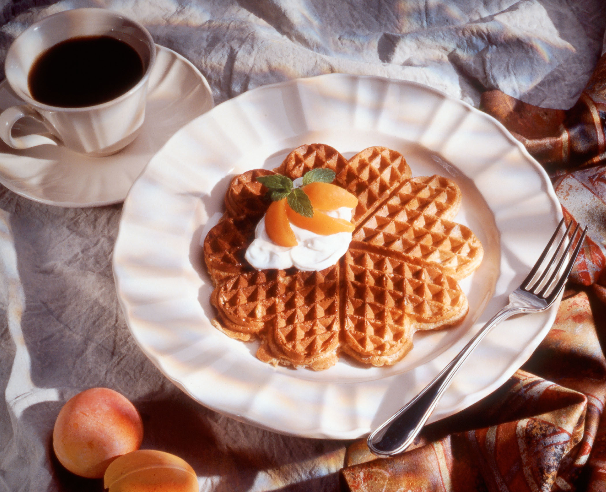 Press BoxLatest Recipe: California Apricots Will Change The Way You Think About Waffles. A healthy, low-fat and deliciously satisfying waffle Waffles have finally evolved to keep pace with our health conscious times. No longer do we need to think of waffles as a breakfast item that begins with a high-fat batter and ends covered with dollops of whipped cream or slavish amounts of butter. With some very minor adjustments, waffles can be healthy, low-fat, and still deliciously satisfying. A great starting recipe is to mix sweet and slightly tangy fresh California apricots and chopped pecans into a batter made of whole wheat flour and buttermilk. A dollop of low-fat vanilla yogurt provides an easy and tasty topping. Apricots herald the arrival of summer and this tasty treat should be enjoyed now, as it won't be around long. Flavorful fresh California apricots are available mid-May through July. A fruit often overlooked as a breakfast staple, California apricots rank high in vitamins A (beta-carotene) and C, provide a good source of potassium, and contribute iron, calcium, phosphorus, and fiber to the diet. The bonus - apricots are low in fat, calories, and sodium. At other times of the year, canned California apricots can be substituted. Apricots are an irresistible ingredient in a waffle that will truly start your morning off right. California Apricot Pecan Waffles Enjoy this easy, delicious and healthy breakfast with your family this weekend. Recipe serves 8. 1 pound fresh apricots*1 cup low-fat vanilla yogurt 1 cup whole wheat flour 1 cup all-purpose flour 2 teaspoons baking powder ¼ teaspoon baking soda ½ teaspoon salt 3 tablespoons sugar 2 cups buttermilk 1 large egg yolk 1 tablespoon vanilla extract 1 tablespoon canola oil ¼ cup finely chopped pecans 3 large egg whites * 1 can (15 ¼oz.) California apricot halves may be substituted when fresh apricots are not available. Note: An easy topping can be made by mixing ½ cup of juice or syrup with 1 cup vanilla low fat yogurt.) Heat waffle iron. Dice apricots. Combine whole wheat flour, all-purpose flour, baking soda, baking powder and 1 tablespoon sugar; set aside. Whisk together buttermilk, egg yolk, vanilla, and oil. Stir into dry ingredients until just moistened. Fold in apricots and pecans. Beat egg whites until soft peaks form; add remaining 2 tablespoons sugar and continue beating until firm peaks form and egg whites are shiny. Stir ¼ of egg whites into waffle batter. Fold in remaining egg whites. Measure 2/3 cup batter for each waffle. Cook about 4 minutes. Nutritional Analysis for Apricot Pecan Waffles Per Serving: 258 calories, 22% (57 cal.) from fat; 10 g protein; 7 g fat (1.2 g saturated fat); 42 g carbohydrates (3.7 g fiber); 418 mg sodium; 31 mg cholesterol. Apricot Waffle Photo (RGB JPEG @ 150dpi)*